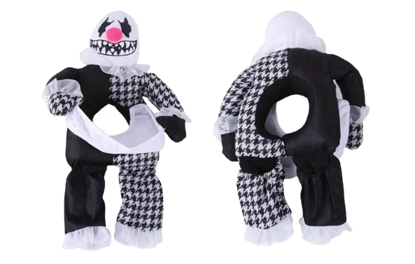 With a clever illusion design, it appears that a spooky clown is summoning your adorable pet. It's sure to make everyone laugh and add joy to any Halloween party or festive gathering.