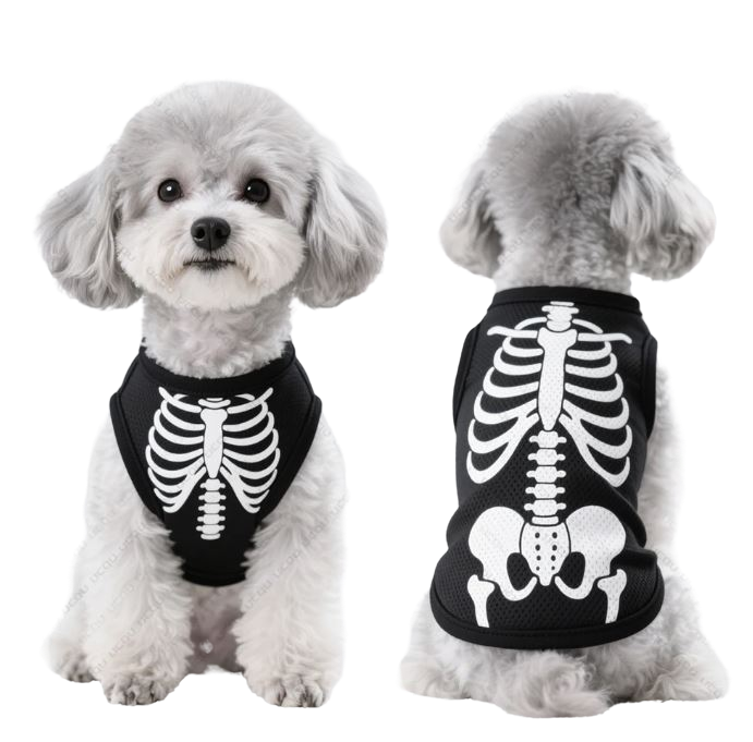 Turn your furry friend into the cutest little bone-chiller this Halloween with the Spooky Pup Skeleton Vest. This vest features a realistic skeletal effect. It is lightweight and breathable, making it great for pups who want to join in on the spooky fun without losing comfort.